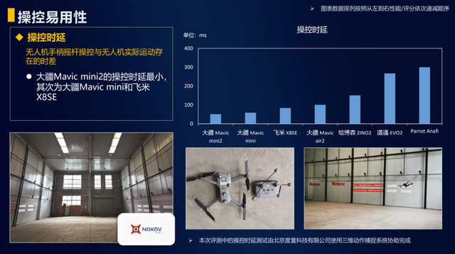 中国移动还对无人机图传画面与实际画面存在的时差和拍摄的视频整体质量进行了客观评价,其中大疆 Mavic mini、mini2.air2 三款稳居前列,时延不超过 300ms,air2 的主观视频质量评分最高,mini2 次之。