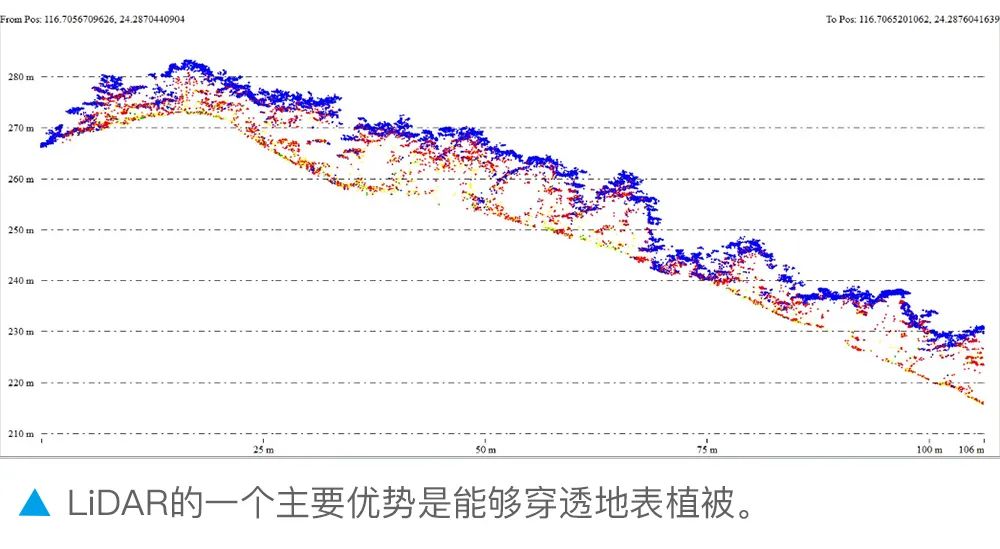 用户在寻找适用的测量和测绘系统时,需要在过往100多年间涌现的技术当中进行选择。这些系统采用了当年改变世界的发明,有些发明甚至影响着人类对外太空的探索;而且这些系统都能在保证安全性的提前下实现精确、高效的测量,并节约成本。第一种永久摄影术在1822 年问世,并在后来的若干年间不断发展 。1840年,一位法国测量师提出使用照片制作地形图的想法。1867年,人们将此项技术命名为“摄影测量”(photogrammetry)。到了今天,在航空应用中,摄影测量可拍摄大量2D图像并将其“拼接”在一起,然后对照已知比例测量距离,制作出3D彩色成果。摄影测量被广泛运用于测量和测绘,以及从气象到电影制作等众多领域。但它的处理非常费时,而且无法穿透植物树冠。1961年,在第一张照片诞生超过一个世纪以后,Hughes Aircraft 将激光引入商用;很快,首个 LiDAR (激光雷达)系统开始用于辅助对卫星的追踪。该技术后来被用来帮助卫星在月球背面着陆,并作为精确测量工具被广泛运用。LiDAR的全称是Light Detection and Ranging(光探测和测距)。它采用主动式快速脉冲激光,通过计算光到达表面并反射回传感器的时间来记录二者之间的距离。如果和GPS(全球定位系统)接收器搭配使用,机载激光扫描器可以创建准确的3D点云,显示陆地(地形测量)或水底表面(深度测量)及高程。LiDAR的使用正在迅速增长:根据 Global Marketing Insights 的一份报告,2019年,LiDAR在全球测绘市场的价值预计超过 9 亿美元,2026 年前可能增加到40亿美元。配备LiDAR的无人机无需将人员置于恶劣地形或天气的风险中,仍可以制作高精度地图。