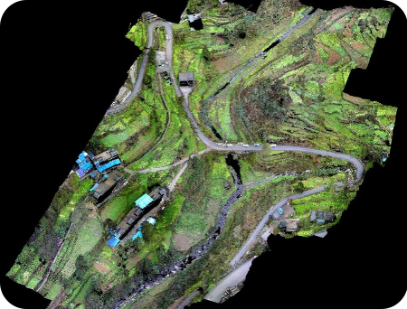 2020年初,贵州省某客户接到一个紧急的测绘项目。如果在现场使用传统架站式扫描仪进行测绘,死角较多,需要频繁搬站,工作效率低,因此客户希望使用无人机搭载LiDAR的方式进行快速测绘。成果要求:客户要求提供成果误差小于5cm的彩色点云文件,客户将据此生成DLG格式文件。- 测区海拔较高,且位于山谷,雾气非常大,且测量当天下着毛毛细雨。普通摄影测量方式受云层遮挡;
