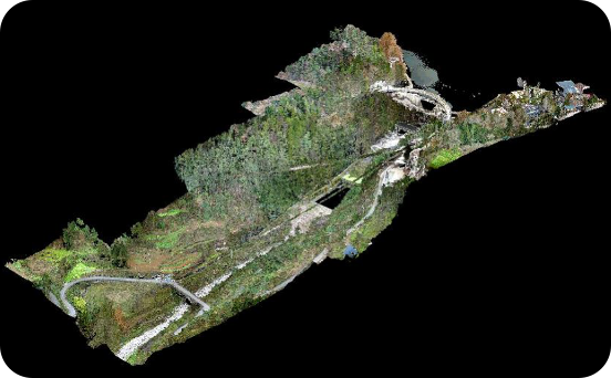 - 生产效率远超传统测绘方式,大坝周边区域,客户派出一个3人小组,使用架站式扫描仪测了2天,而使用mdLiDAR3000仅用1个架次15分钟即完成了。