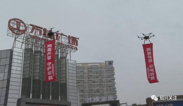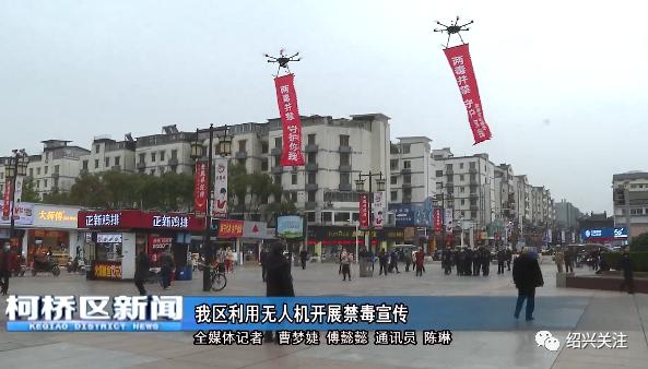 这是柯桥警方首创使用无人机高空喊话开展禁毒宣传