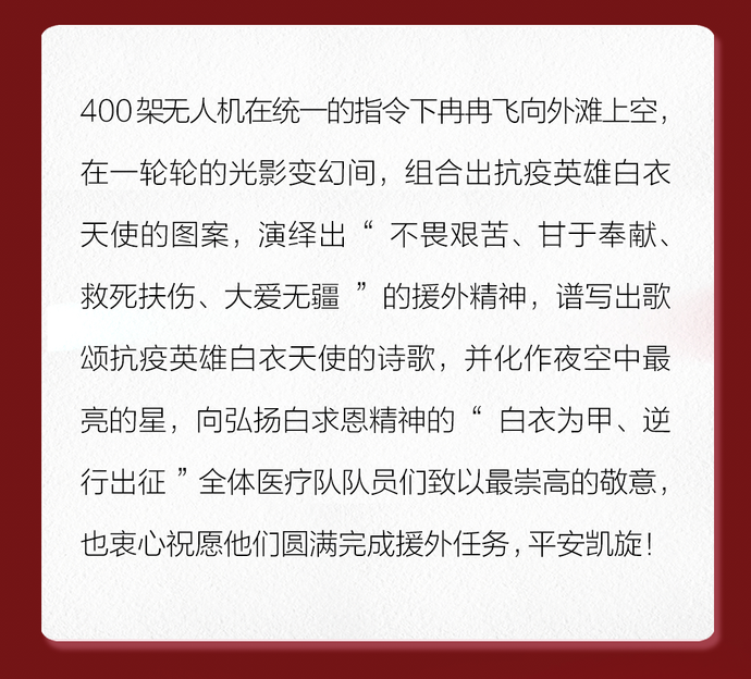 400架无人机齐上阵,向最美逆行者致以最崇高的敬意!