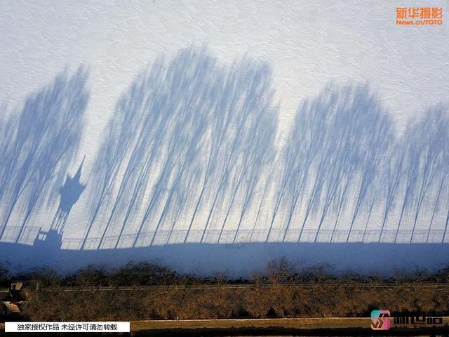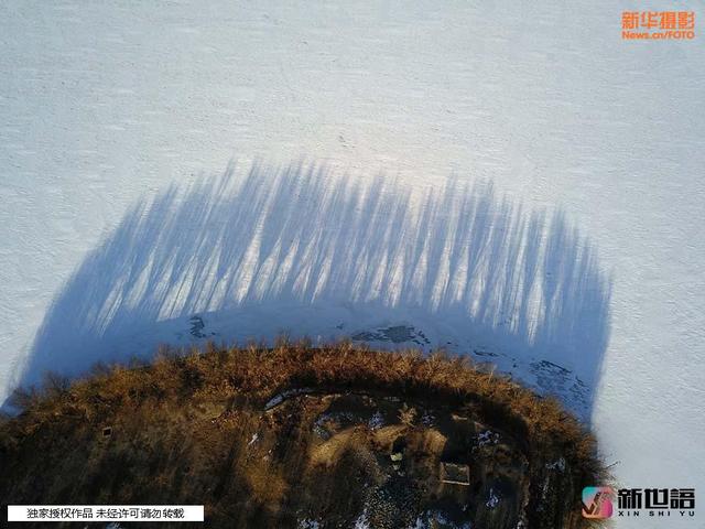 寒冬时节,位于祁连山下的甘肃省张掖市甘州区碱滩镇二坝水库水面全部封冻,水坝边的树木和水塘在夕阳的映照下呈现出了独特的造型和图案,彰显了西北大地独特的魅力。