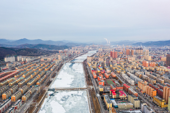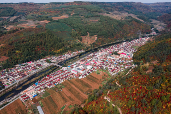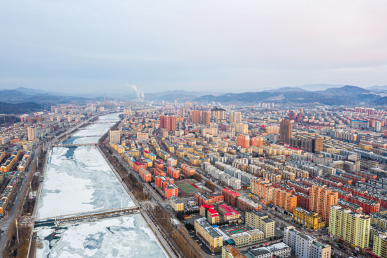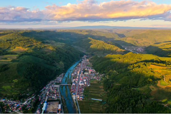 吉林省白山市长白朝鲜族自治县新房子镇落日余晖洒满小镇