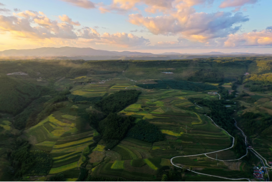 吉林省白山市长白朝鲜族自治县夕阳照耀山田