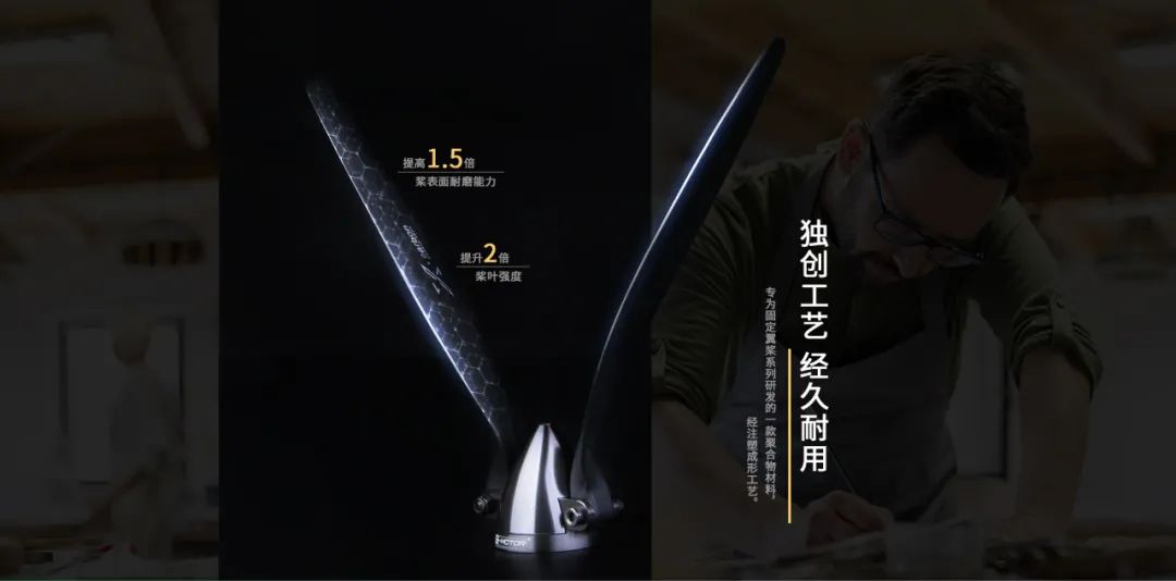 大家知道固定翼市场上主流的是一体塑料桨,那我们固定翼折叠桨的特点和优势是什么呢? 首先它使用聚合物碳纤材质,一方面保证了桨的刚硬,另外一方面保证了桨的轻量化, 经注塑成形工艺,提高1.5倍桨表面耐磨能力和2倍耐劳能力,无疑是给固定翼市场消费者一个全新的体验与突破。