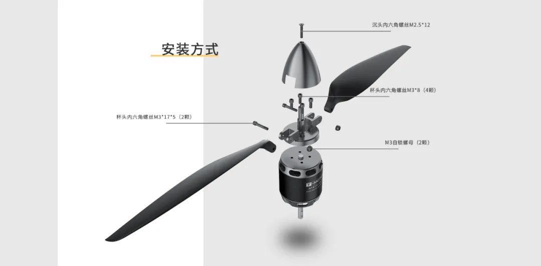 使用上折叠桨比直桨更便携,并且当桨叶损坏时更换很方便,整流罩可以随意搭配任何桨型,例如其它尺寸二叶桨或者是三页桨。