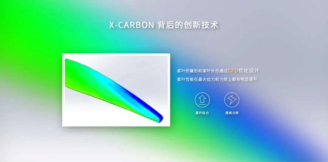 桨叶的翼形和桨叶外形通过CFD优化设计,桨叶性能在最大拉力和力效上都有明显提升。