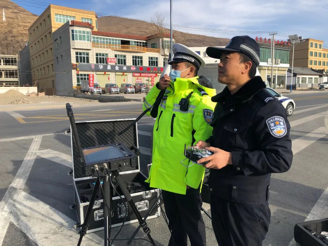 近日,岷县公安局交警大队利用警用无人机在辖区重点路段开展违法行为查处、执勤巡逻、查看道路通行情况,着力构建“空地”一体化勤务新模式,全力维护春运期间道路交通安全畅通。