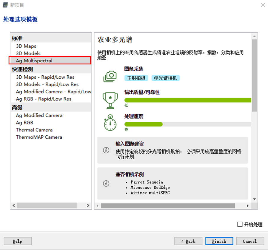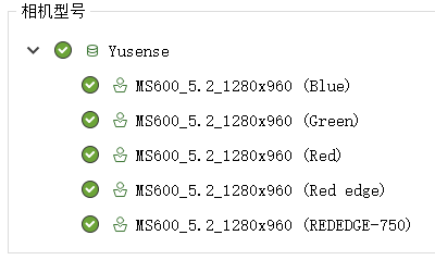 ①确认相机列表被读取为Yusense相机组,这样可以提高影像处理效率和波段配准精度。