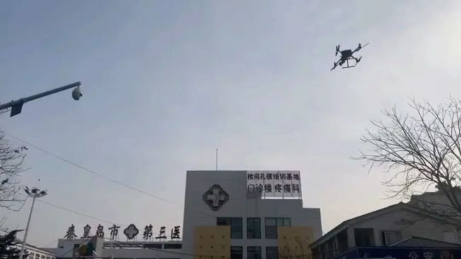 秦皇岛交警二大队民警利用无人机,在第三医院门前开展无接触式宣传,保障医院门前车辆顺畅通行,维护道路安全畅通。