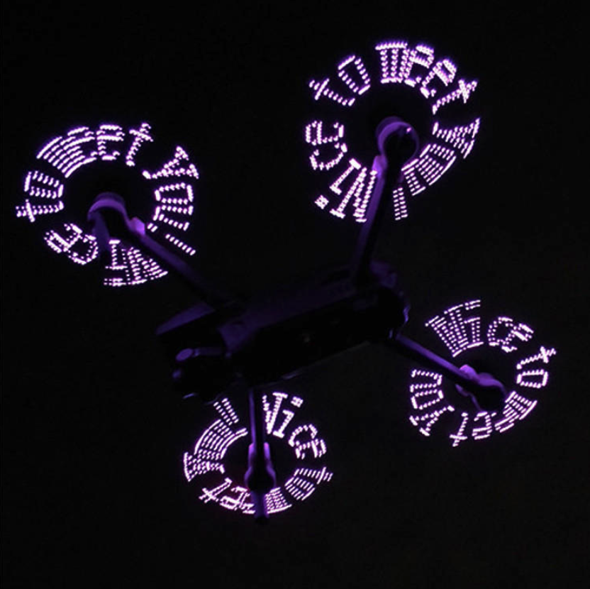 看到这些小三角标记了吗?看来它们是刻在叶片上的,用来捕捉光线。实际的LED灯位于螺旋桨的核心位置,是为了照亮一个叶片而设计的,非常酷的设计。