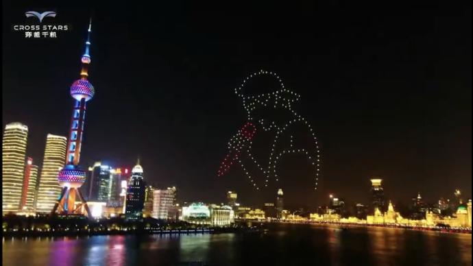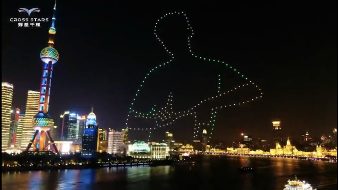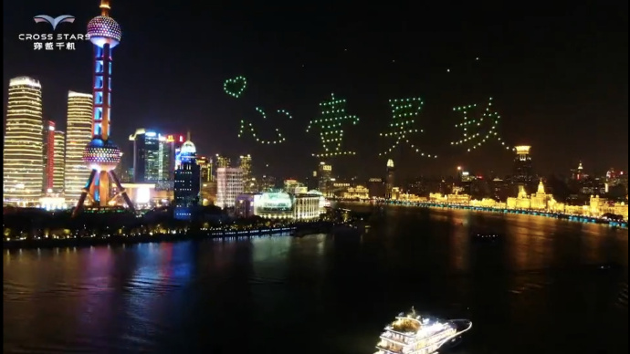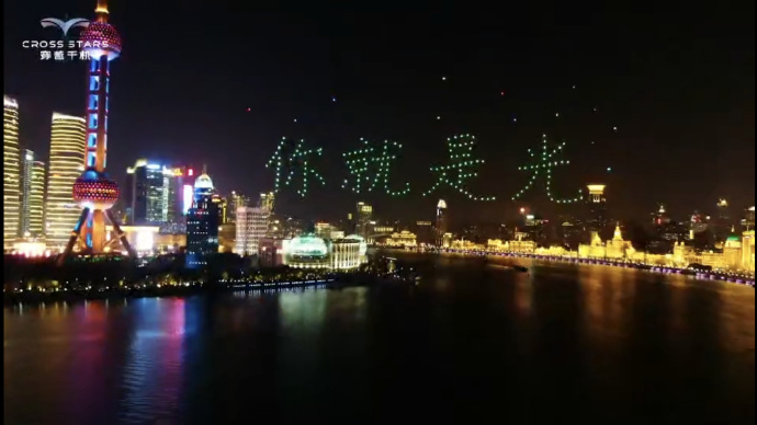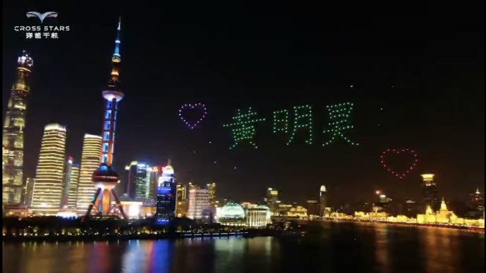 无人机拼成各种形状,相信小贾也会喜欢这一场空中的派对,这晚的上海夜景也格外美,“Justin&NANA”被所有人看到啦!