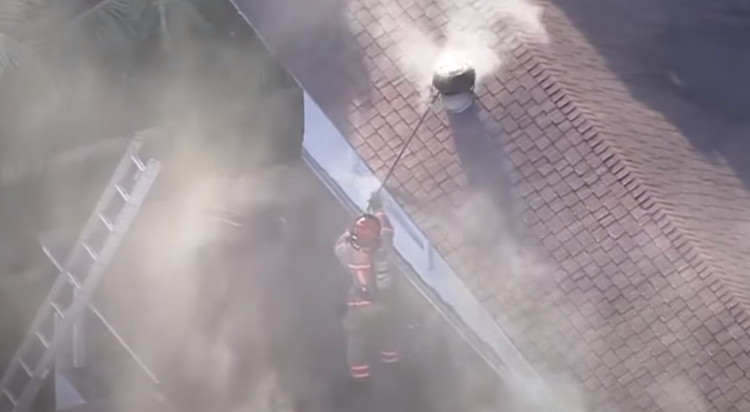 当消防队员赶到现场时,屋顶上正冒着浓烟。但是,在房屋外部没有看到火焰,从房屋结构也无法观测内部的情况。于是他们发射了一架装有热像仪的无人机。从画面中看不太清楚,但似乎可能是大疆Mavic 2行业版。
