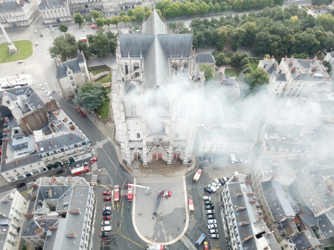 法国鲁昂大火的无人机镜头