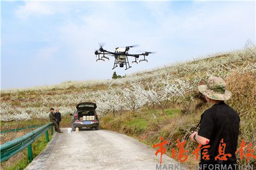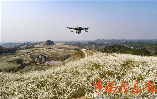 随着气温回升,这个专业合作社种植的1400多亩李子树进入盛花期。当地利用植保无人机对李花进行授粉,提高授粉效率,节约劳动成本。