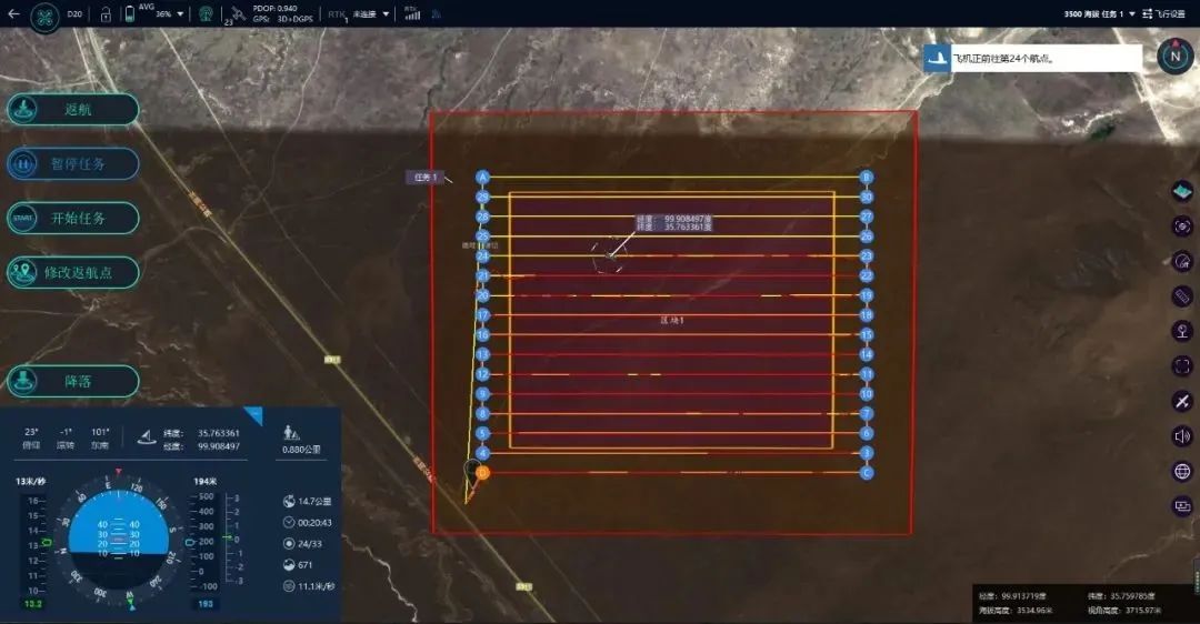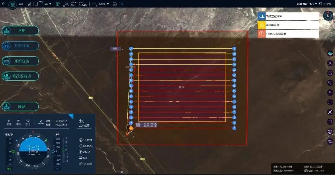 本次高原测试中,D20顺利完成海拔2500、3500、4000高海拔高度的飞行任务,包括机身安全、飞行姿态,续航、数据获取在内的多项指标均符合要求,测试结果优秀。