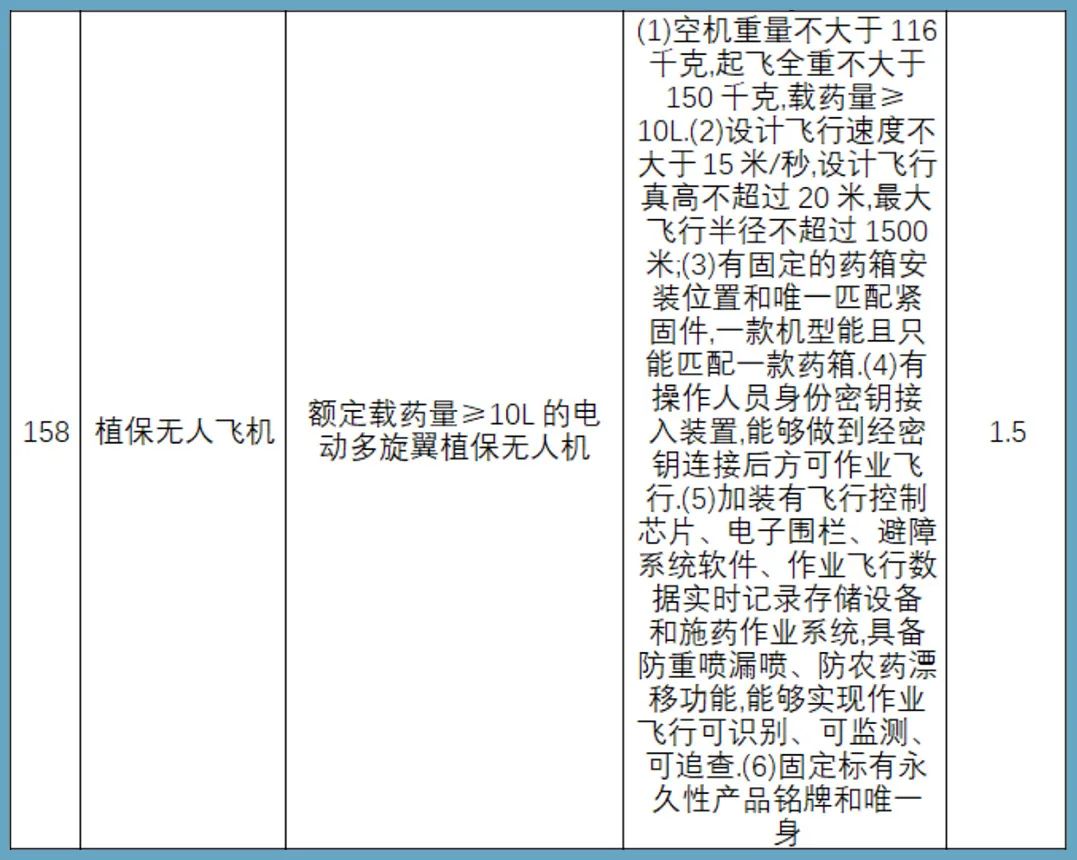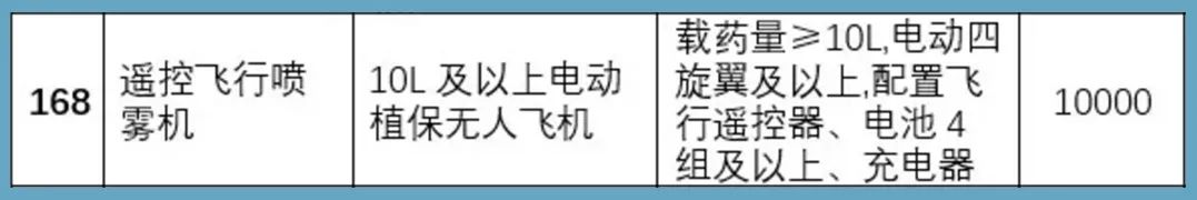 植保无人机10L及以上,要求电池4组,补贴金额10000元。