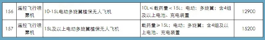 植保无人机15L及以上,要求电池4组,补贴金额15200元。
