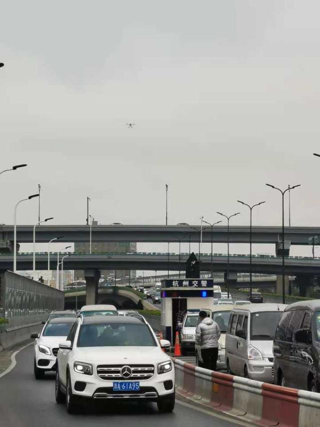 在杭州高架和绕城高速上开车的司机可能会发现,道路上方不经意间会传来一阵阵交警的提醒和警示语。抬头望去,空中多了一台嗡嗡作响的无人机。