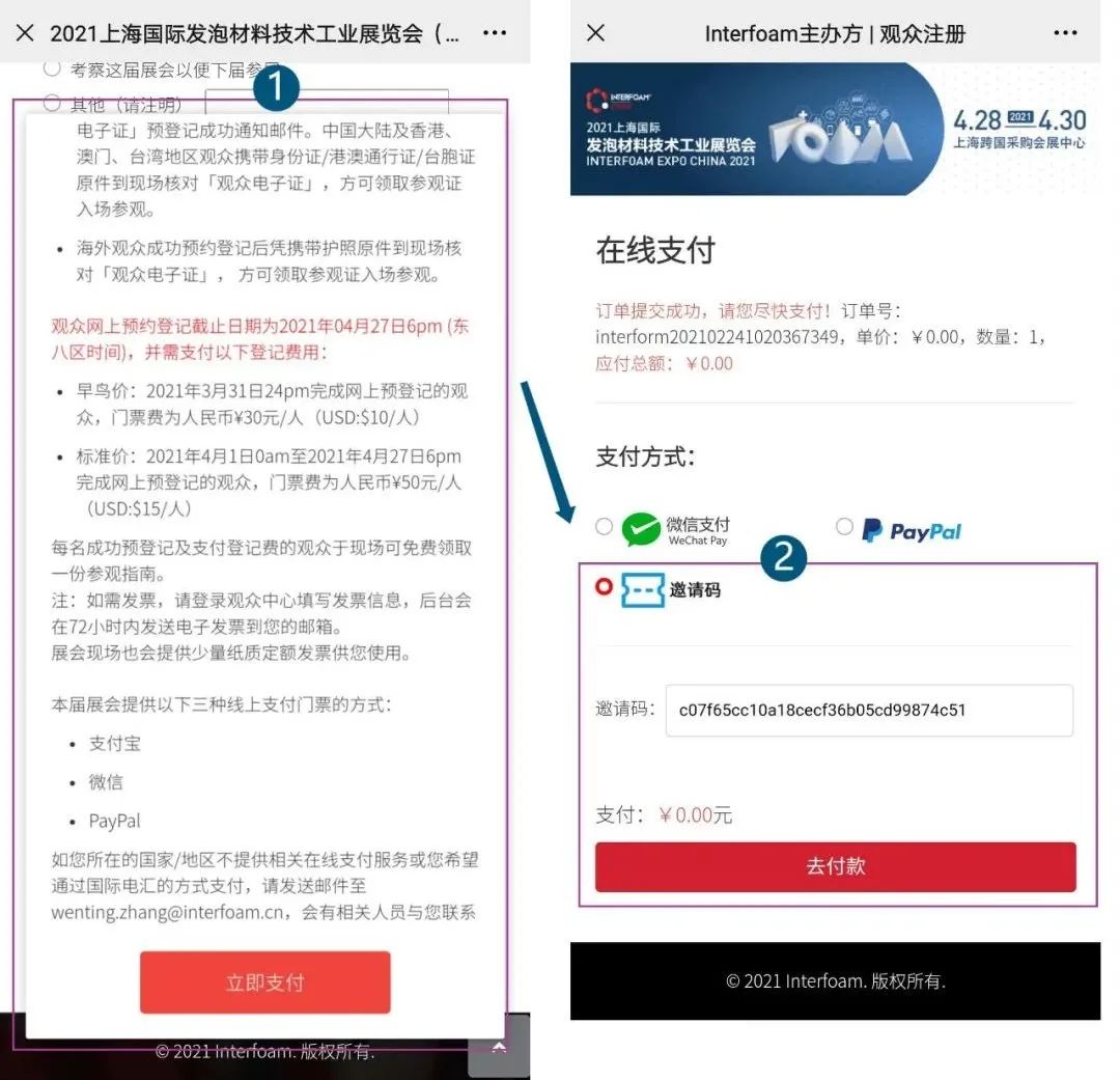 关注“Interfoam发泡材料展”公众号,回复“元宵快乐”获取免费邀请码,并复制!在菜单栏点“观众”-“观众预登记”,进入资料填写界面。