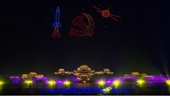 此次央视频大型新媒体直播通过无人机编队表演、虚拟演播室相结合的方式,多维度讲述中国共产党风雨兼程、沧桑巨变的百年历程。