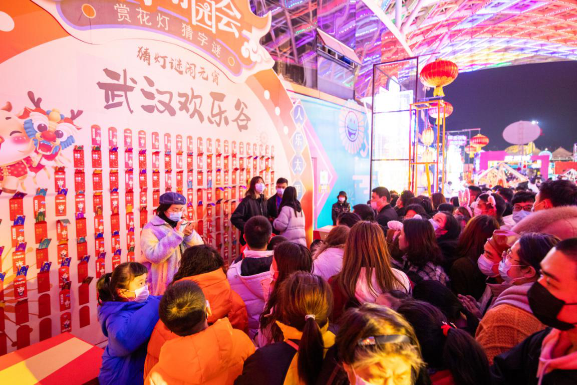 元宵节当天,许多家庭游客合家入欢乐谷游玩,万名游客一同欢度元宵,在园区享受大团圆。“今年响应国家就地过年的号召,一家四口都留在武汉过年。这里既有充满现代科技感的主题灯光秀,又有像舞龙舞狮、滑稽小丑这样精彩的传统民俗表演,我们家小朋友喜欢的不得了。”吴女士一家籍贯河南,这是他们第一次在欢乐谷里过元宵节。