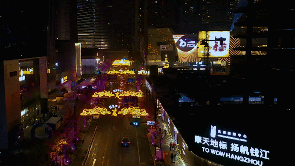 高科技与艺术跨界结合,以天空为幕的全新表达方式,十字金街巧妙地将地面舞台延伸到璀璨夜空,不仅传播了杭州悠久的历史文化,更彰显了时代新特色。