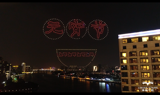 本次表演由广州市委宣传部指导、中央广播电视总台携手获得吉尼斯世界纪录的穿越千机无人机表演团队呈献。当晚,穿越千机也与白天鹅宾馆进行了战略合作签约仪式,实现无人机常态化飞行表演。