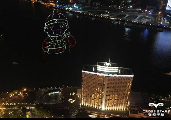 2021年元宵节,作为广州“湾区月正圆”系列活动之一,穿越千机在白鹅潭畔进行了无人机公益飞行表演,为全国人民送去元宵节祝福;同时也宣布与白天鹅宾馆携手,实现无人机飞行表演常态化。广州市民将在华灯初上的日常夜晚,也能看到绚丽如烟花的精彩无人机表演。