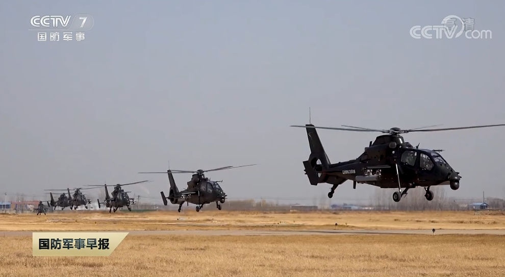 图片说明:武直迅速升空作战央视截图