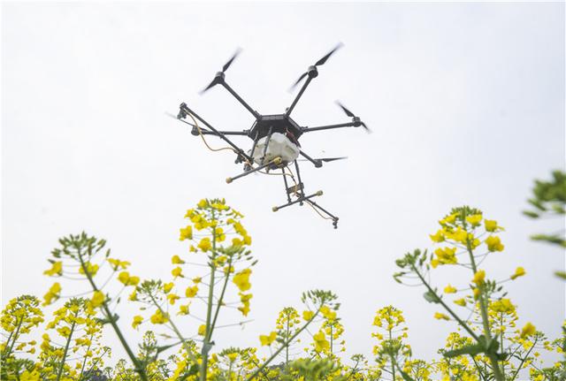 刘兵跟记者算了一笔账,传统人工手动背负式喷洒农药,平均一人一天可喷洒20亩左右的农地,而一台植保无人机,平均一天可喷洒270亩左右的农地,效率是人工的13倍。目前,该公司投入了15台无人机,雇佣了15名无人机操控人员,可在一天的时间内完成4000多亩油菜地的农药喷洒作业。