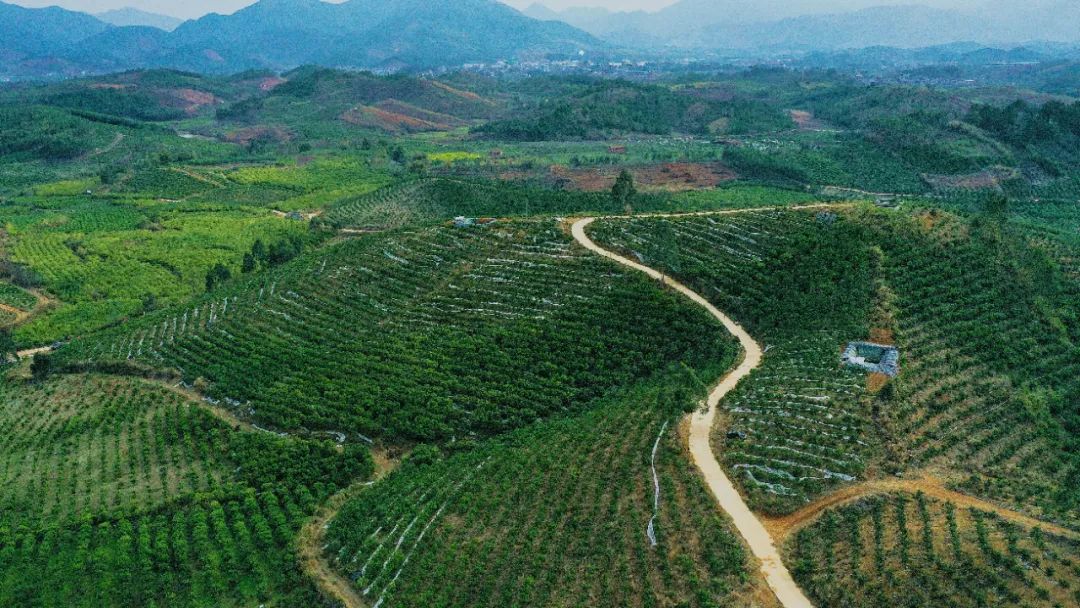 不负春光,不误农时。在金秀县头排镇二排村大西江柑桔产业示范区内,放眼望去,果树成片相连,郁郁葱葱,产业路如同玉带缠绕。产业路旁,4架满载农药的无人机在操作员的熟练操控下缓缓飞起,来回穿梭于果园上空,无人机所到之处,一层薄雾轻轻洒落。