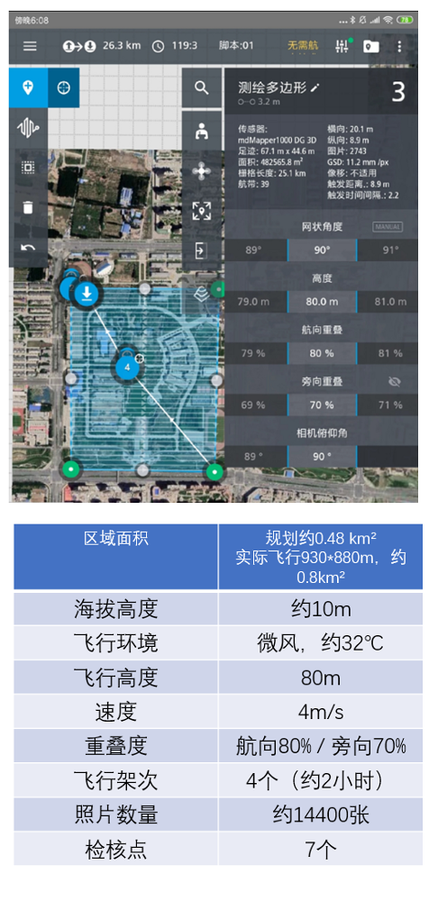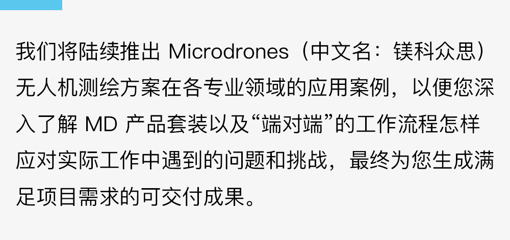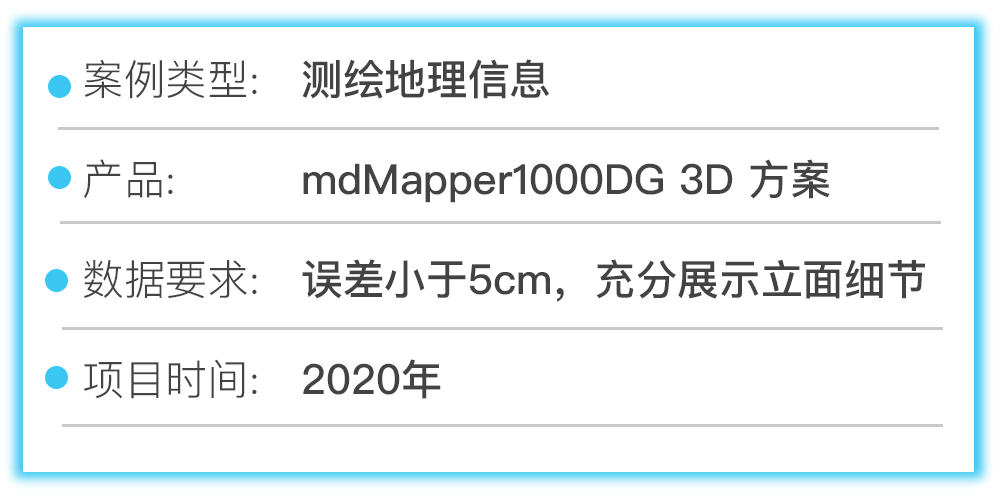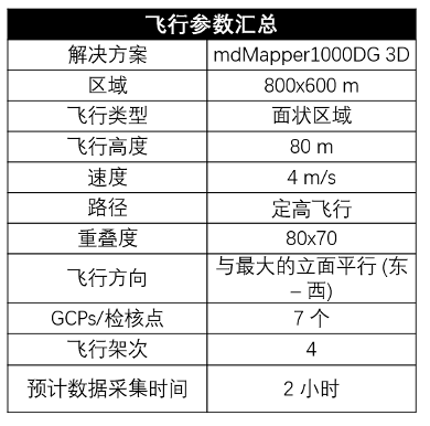 航测实施该案例中,我们使用 Microdrones 集成系统 mdMapper1000DG 3D,对测区建筑物进行了数据采集。并根据现场环境: