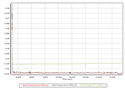数据处理在该案例中,Microdrones使用 mdMapper1000DG 3D 解决方案,在测试区域飞行 1个架次共 0.8 km2,飞行高度80米,采集了GNSS数据,影像数据,惯导数据。经过数据处理生成了该测区的轨迹文件,EO文件以及3D模型。同时在本测区内采集7个检核点,用于验证模型精度。数据处理流程:1)通过mdinfinity生成轨迹文件以及 EO(外方位元素文件),并进行轨迹文件精度分析: