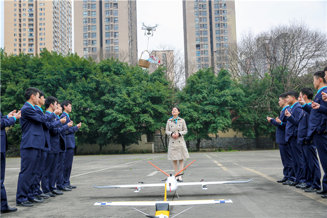 “快看,那是什么?”“你看那里有无人机拉着横幅……”为庆祝第111个国际妇女节,近日,来自重庆海联职业技术学院无人机专业的学生发挥专业特长,精心策划了一场颇有仪式感的妇女节活动,无人机拉横幅、无人机给女教师送花,迎来不少同学围观拍照。