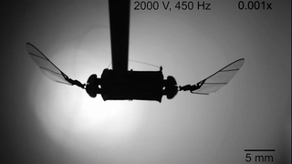 MIT助理教授YuFeng Chen由此受到启发,研制了一种新型的介电软体驱动器(dielectric elastomer actuators),用来驱动仅有0.6g重量的软驱类昆虫无人机。