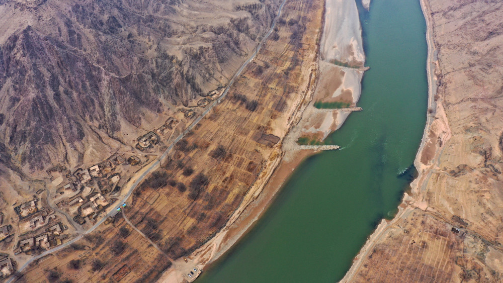 初春时节,黄河宁夏段河水清澈、碧波荡漾。