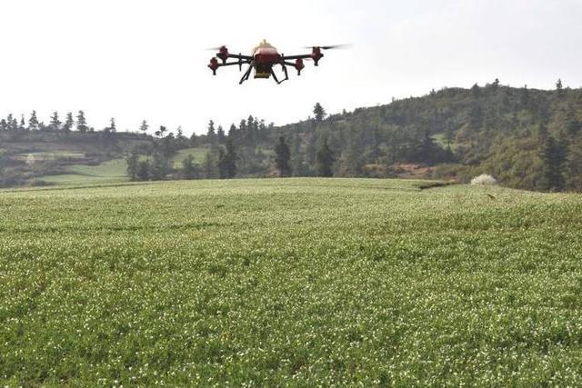 据悉,此次无人机农作物“飞防”作业历时2天,对箐口村130户的340余亩甜脆豌豆全覆盖喷施农药。