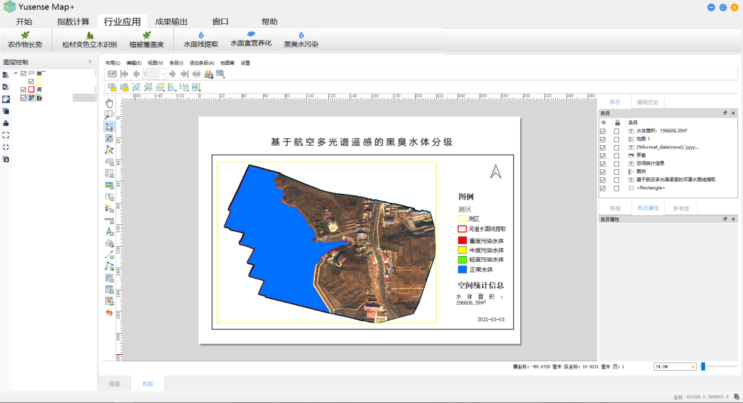 Yusense Map+以软件即服务(SaaS)为设计理念,输出成果均为行业通用的标准形式,可直接使用。比如,上述应用中输出的黑臭水体分级矢量结果可一键导入Yusense River或第三方智慧河湖库管理平台进行展示与应用,充分发挥出遥感监测在河湖库生态管理中的优势与价值。