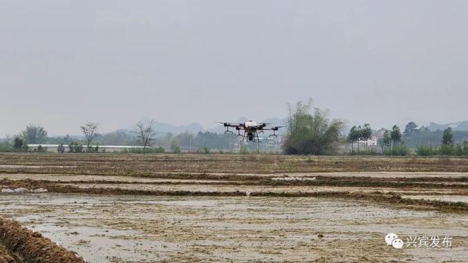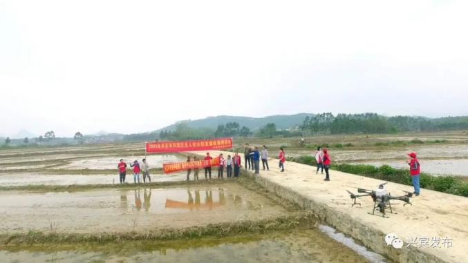 人勤春早农事忙,3月15日,兴宾区在三五镇碑口村开展“无人机水稻直播闹春耕”活动,拉开春耕序幕。