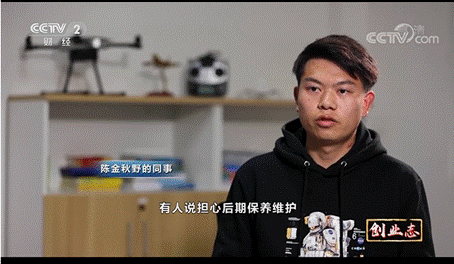 2021年3月12日,CCTV财经频道《创业英雄汇》栏目报道了天翼航空科技有限公司董事长陈金秋野引领其无人机创业团队艰苦创业的经历,陕西职业技术学院无人机应用技术专业2018级学生李成均同学作为创业团队重要成员,也在央视创业栏目中一展风采。