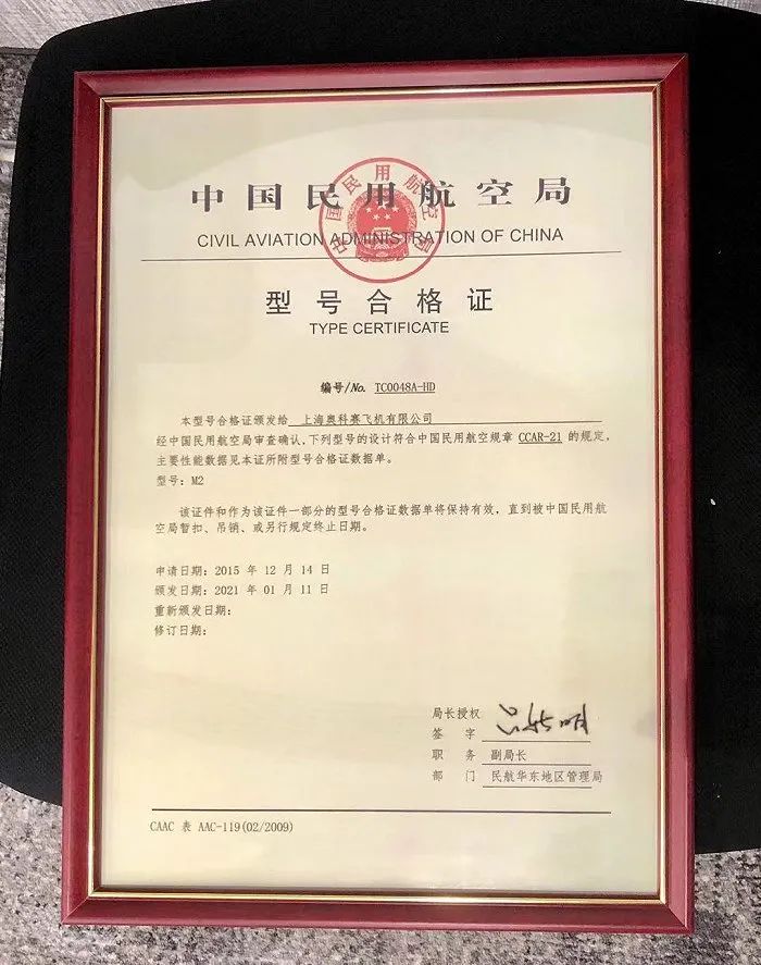 M2型轻型运动飞机型号合格证(TC)。摄影:方卓然