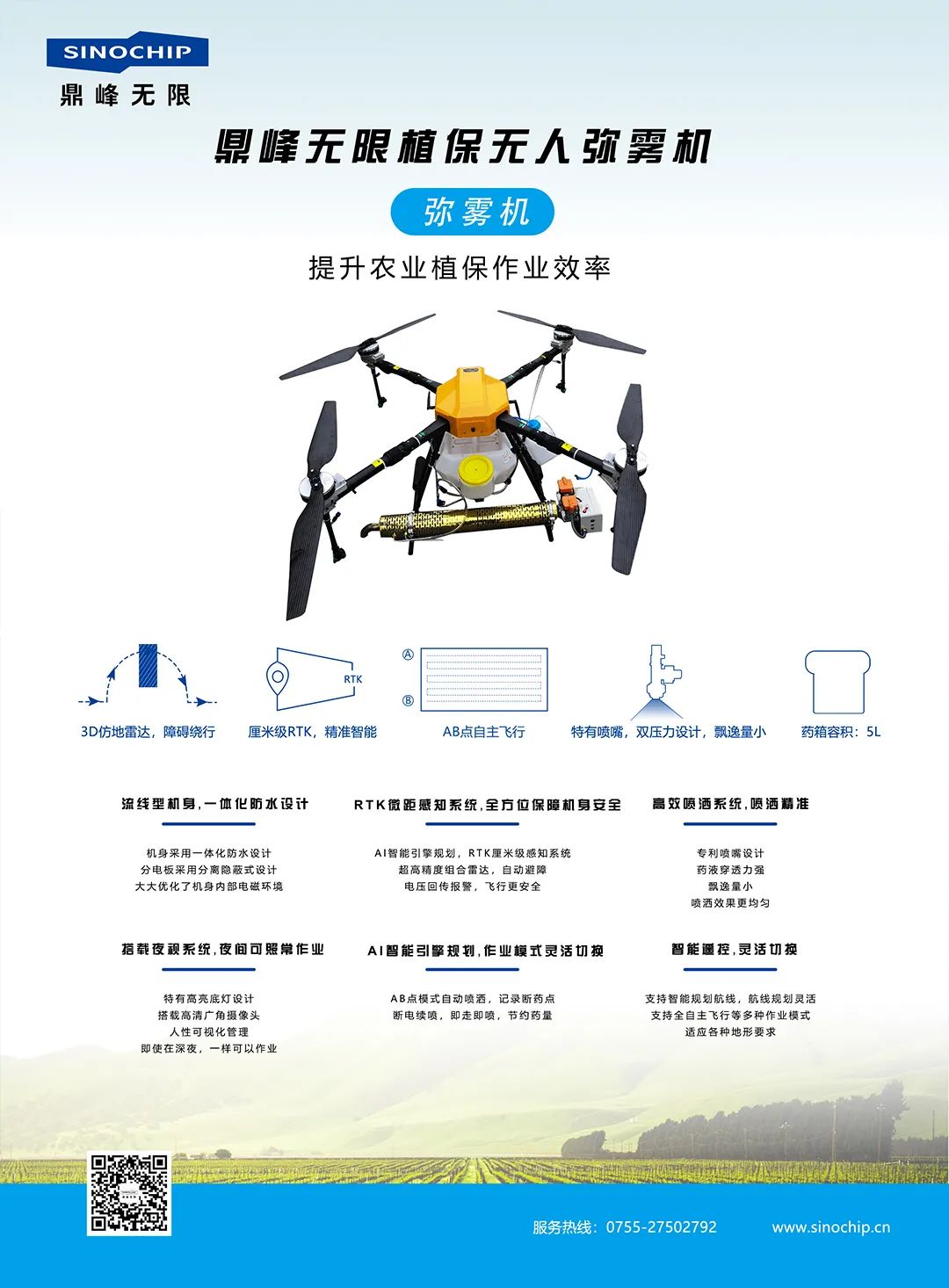 鼎峰无限作为继大疆、极飞之后,植保无人机领域的新生主力军,自2011公司成立至今,已推出多个系列,不同功用的植保无人机产品。并相继获得了“2016年深圳市最具投资价值企业50强”、“2016年深圳10大最具成长力企业”、”2018深圳高科技高成长20强“、“中国创新大赛第二届机器人行业赛第二名”、“国家高新技术企业”等荣誉。所生产的各品类产品在全国各省市均已进入国家农机产品补贴名录。鼎峰无限将继续高举“提升农业植保效率”的大旗,为助力国家农业植保效率的提升贡献力量。