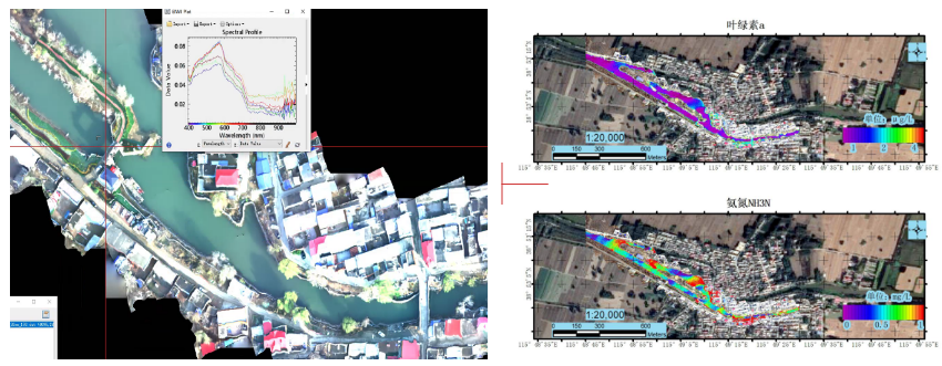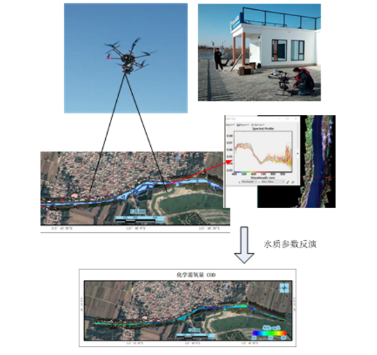 采用无人机搭载高光谱成像环境污染溯源系统,对河流、淀区、水库、海岸带等区域15种水质参数(COD、TP、TN等)进行高光谱水质参数反演,输出飞行区域水质参数的空间分布数据,通过追溯模型算法,分析水质的参数变化趋势,并出具污染源追溯报告。
