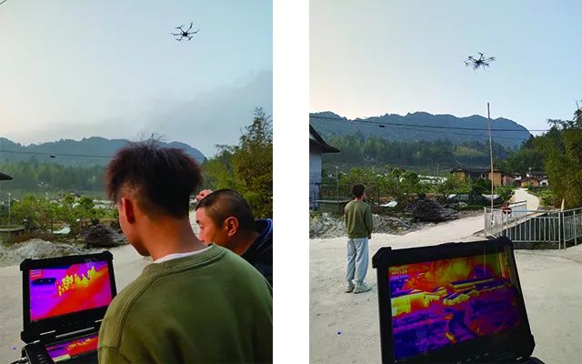科比特飞手此次驾驶的入云龙无人机搭载红外热成像相机,在山林上空进行勘察,与地面人员进行实时的数据传输。红外热成像相机能够将物体发出的不可见红外能量转变为肉眼可见的热图像,热图像所显示的不同颜色代表被测物体的不同温度,而温度较高人体则会特别显眼,给夜间搜救提供极大的帮助。