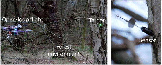 随后,研究人员在户外进行了实地测试。他们还发现并改进了诸多问题,比如说在森林中,树叶会影响GPS信号,这就需要用基于位置估计的车载传感器进行代替。测试中使用的传感器依赖于Arduino nano 33 BLE Sense,该传感器通过低功耗蓝牙技术传输温度、大气压和亮度等数据。在基于视觉的系统上,研究人员主要使用视觉惯性里程计(VIO)来充当运动捕捉系统的直接替代品。不过,例如飞行时间传感器、立体视觉或深度传感器的机载定位系统还是有其他优势的,这些系统可以提供深度信息,知道目标深度后,就可以闭合回路以计算发射位置。