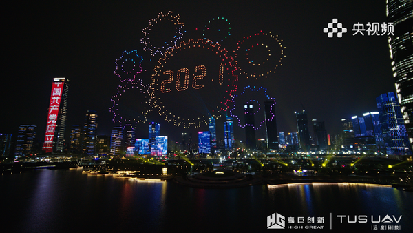 为庆祝建党100周年,中央广播电视总台开展“建党100周年灯光秀”专题活动——《星星之火 百年流光》。在建党百年倒计时100天之际,央视频携手高巨创新,在深圳湾以1000架无人机表演的方式献礼建党一百周年,用初心立足当下,奋力开创新辉煌。