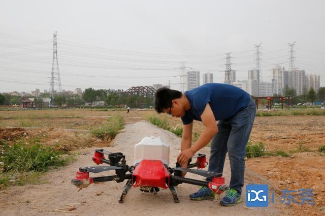 日前,记者来到位于石碣镇起航广场的公益田园,经过10余天的整地、除草、泡田后,这里的种植田正式进入播种阶段。只见农技人员将无人机搬到机耕路上,调试设定好参数,将准备好的水稻种子倒进种盒并启动机器。随着“嗡嗡”声响起,无人机在离田地4米左右的上空来回穿梭,“肚子”里源源不断地吐出一粒粒水稻种子,均匀地播撒到田块里,经过之处,田里荡起阵阵涟漪,3分钟便能完成一亩地的播种。