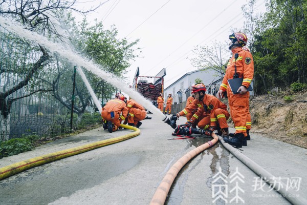 南京市消防救援支队作战训练处副处长徐波介绍,利用远程供水车向山上供水,利用水炮、水枪设置防火灭火的隔离带,再经过打防火隔离带、打一些飞火,去锻炼队伍,更好地保障2021年清明期间森林火灾的防控。